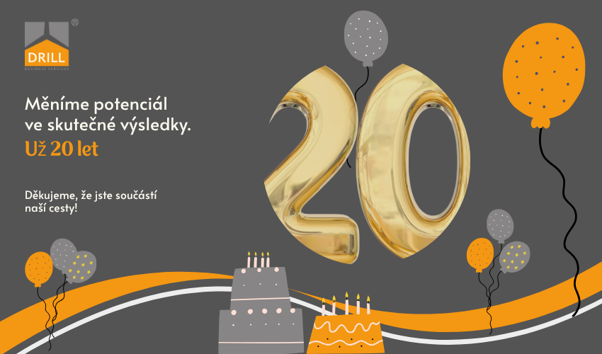 DRILL – měníme potenciál ve skutečné výsledky. Už 20 let.“Oslavujeme 20 let úspěchů i proher, ale současně je to pro nás závazek i do dalších let. Jsme hrdí na to, že po dvou desetiletích neustálého rozvoje a profesionálního přístupu pomáháme široké klientele. I do budoucna se budeme držet naší filozofie, orientace na výsledek a komplexnosti služeb.”
